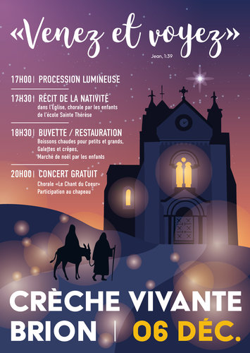 La soirée débutera à 17h avec la procession lumineuse qui conduira à l’église, puis à 17h30 le récit de la Nativité et la crèche vivante émerveillera petits et grands. A 18h30, boissons chaudes pour tous et pour finir, concert par la chorale « Le chant du cœur. « Venez et voyez ! »